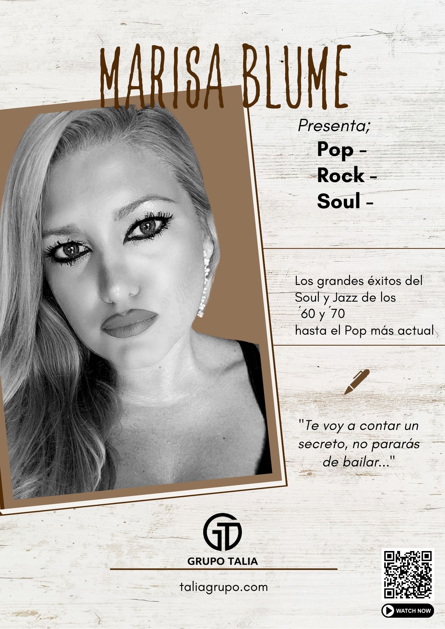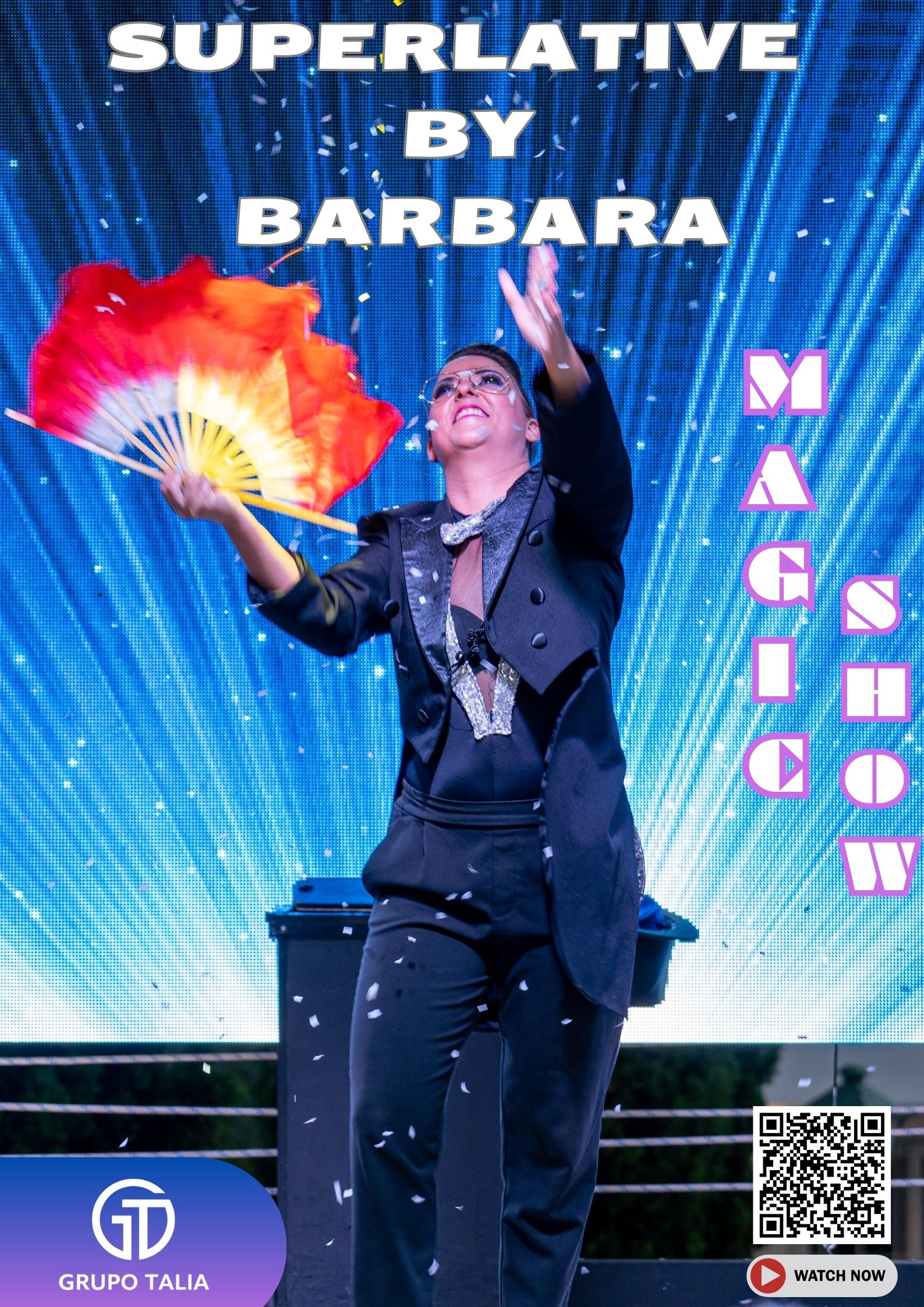 Una joven empresa fundada en 1998 por Guadalupe Vázquez, actriz profesional durante mucho tiempo, que compartió con el público su pasión como actriz, directora y profesora de arte dramático hasta que se convirtió en agente artístico. ¿Por qué Grupo Talía? Hoy no sólo somos una empresa de espectáculos, somos una empresa de servicios integrales de entretenimiento. Damos servicios de animación, asesoramiento, formación y espectáculos profesionales para garantizar que tus clientes no sólo se diviertan, sino que disfruten de una experiencia global llena de diversión. Sin olvidar la conciencia social y para con el planeta.
